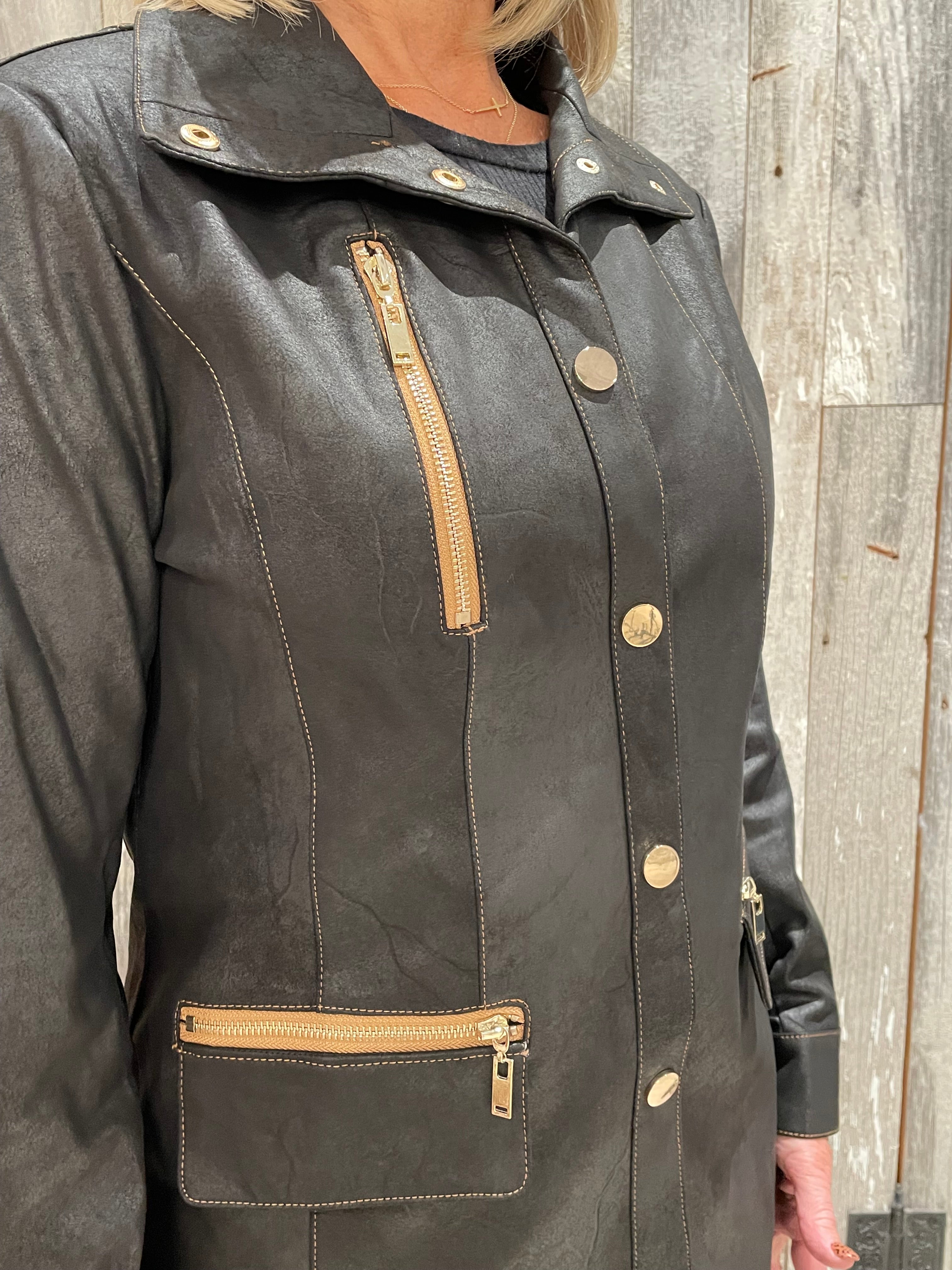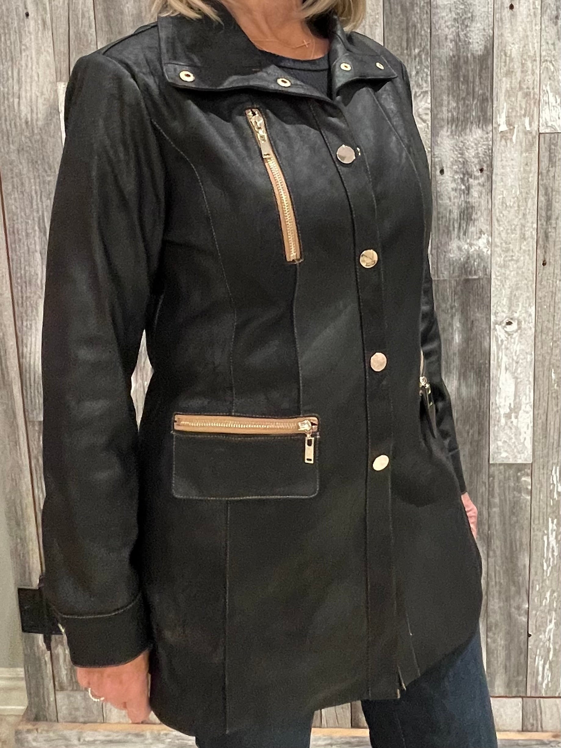 Style: Longline utility-inspired jacket with a polished, structured silhouette.