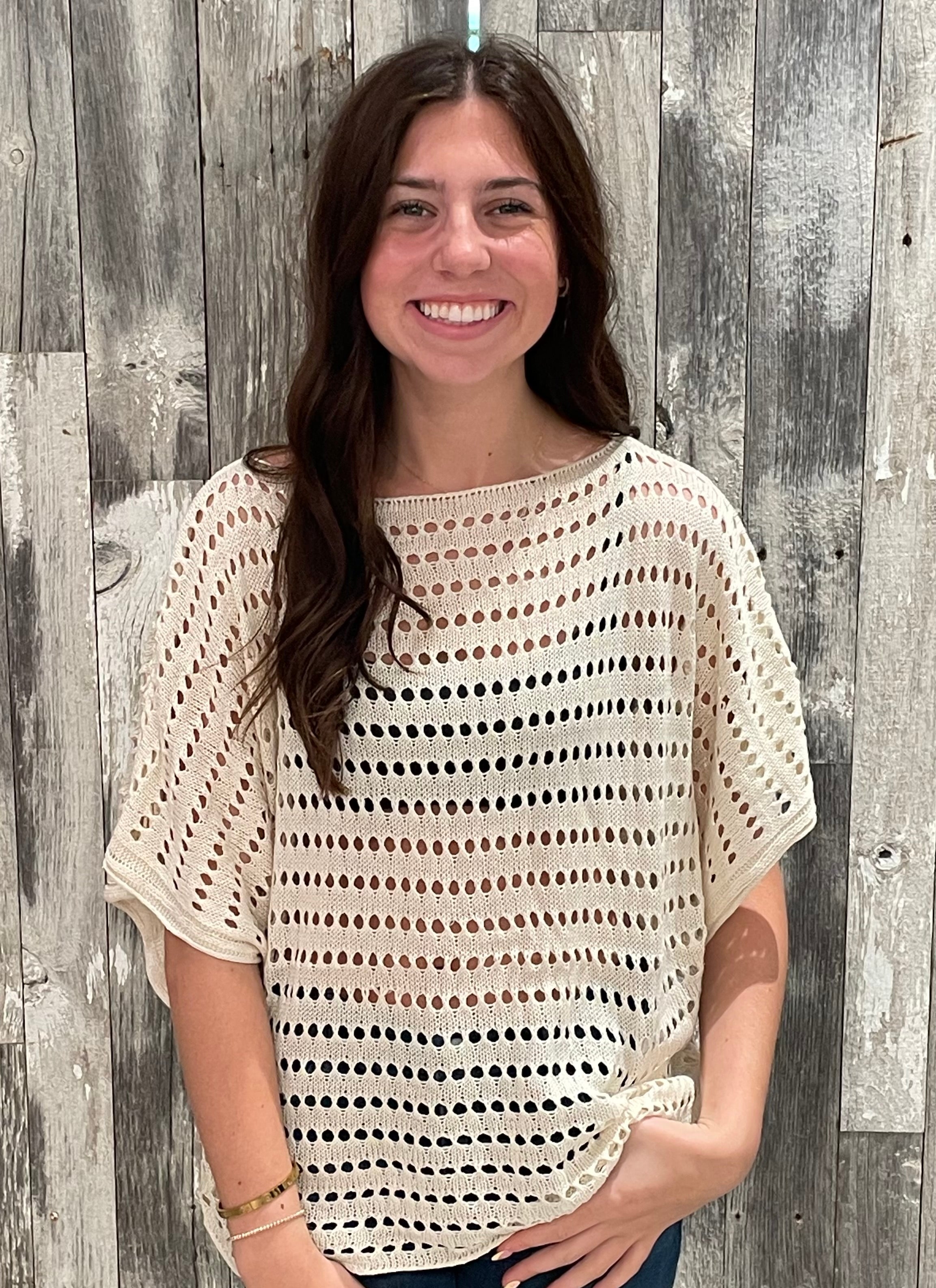 Open-knit crochet-style top with a breezy, relaxed silhouette