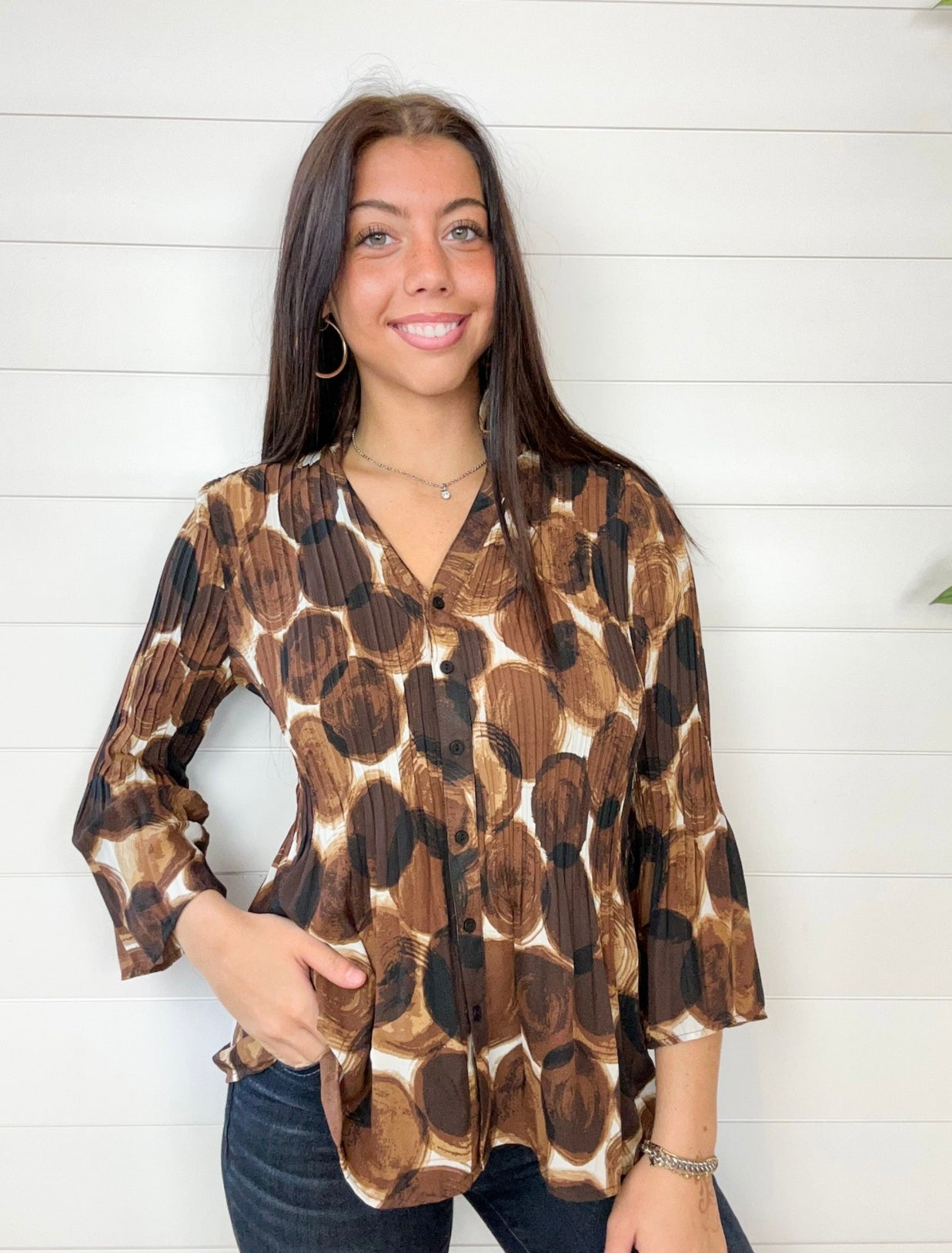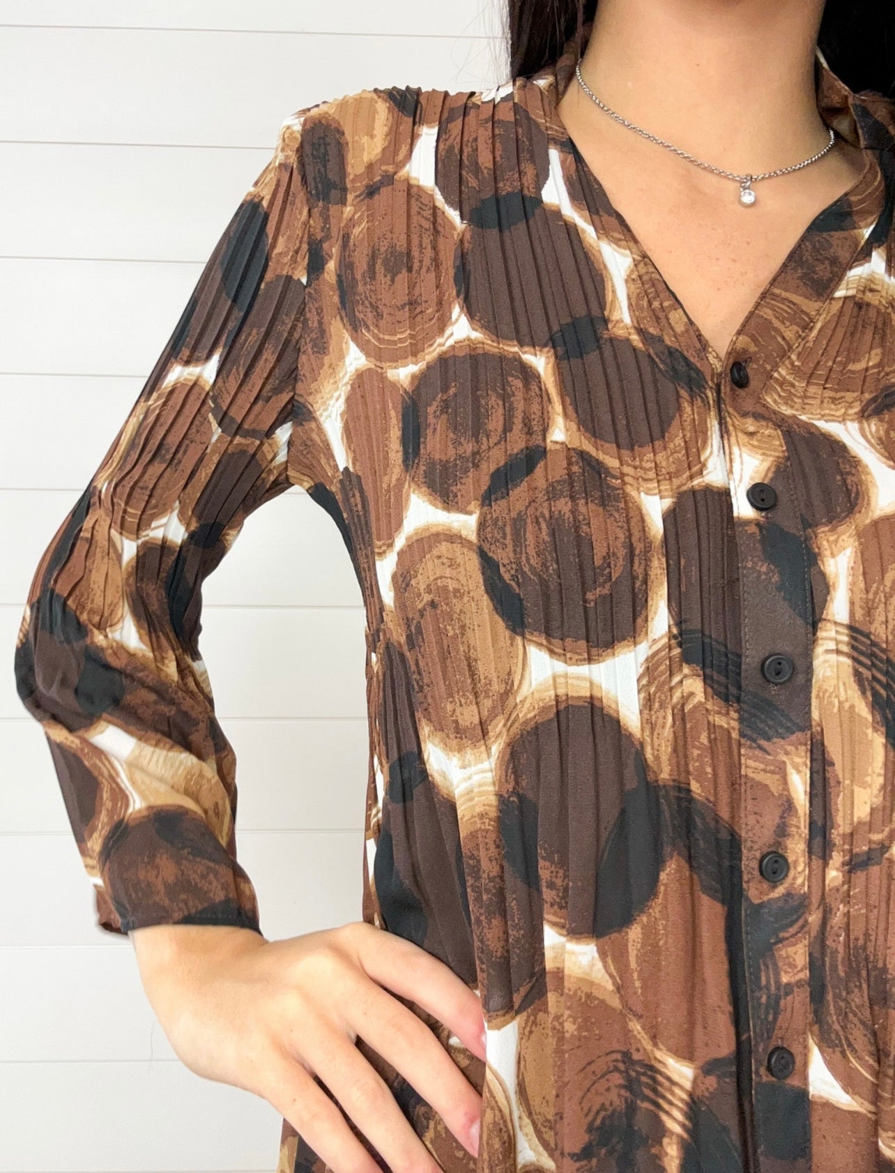 Abstract painterly dot print in shades of espresso, caramel, and cream