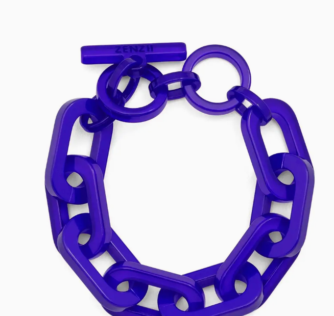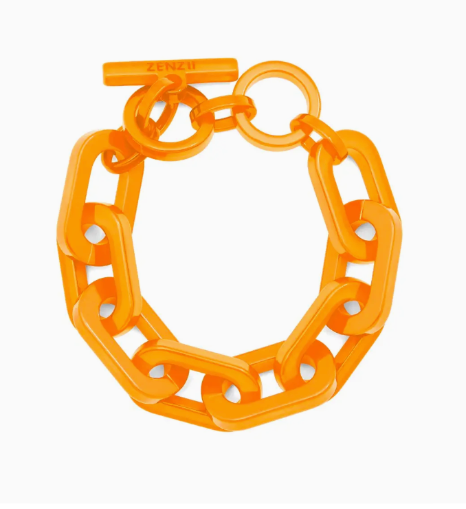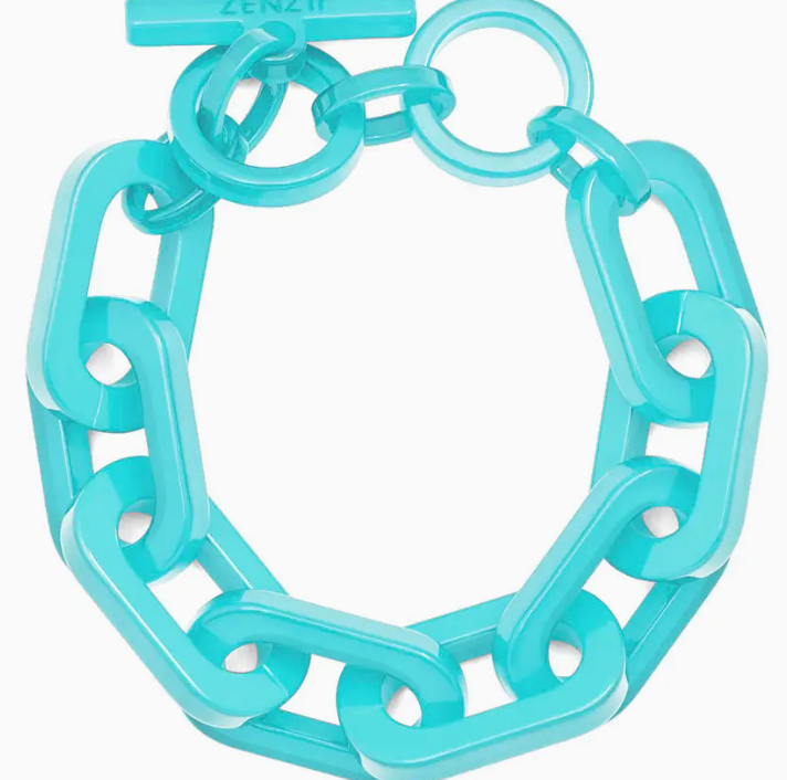 The Resin Cable Chain Toggle Bracelet adds a bold, colorful touch to any outfit.