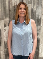 Sleeveless Eyelet Button Down Top