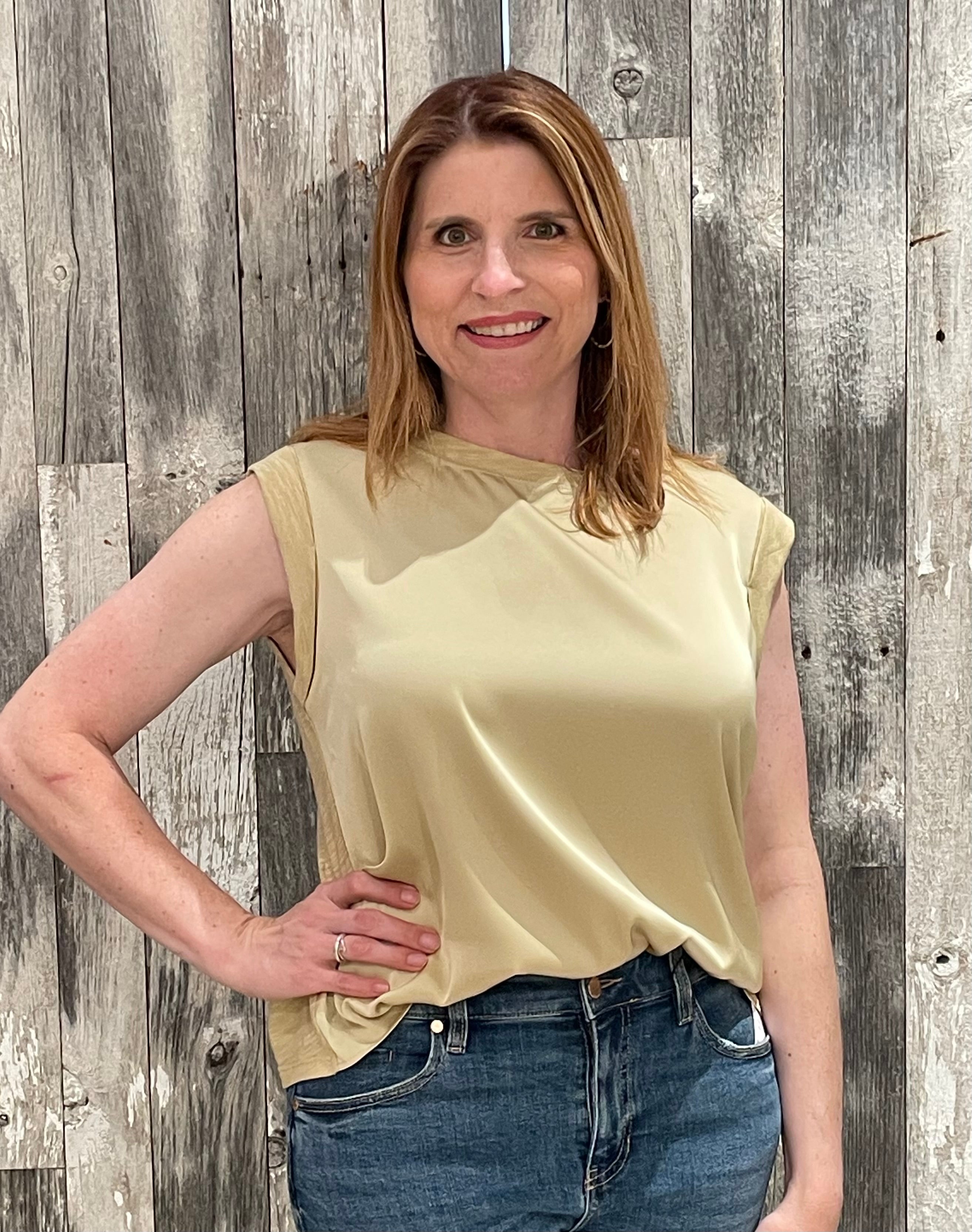 The Liverpool Satin Front Cap Sleeve Tee is your not-so-basic basic—perfectly polished with a silky satin front and a soft slub knit back. It fits true to size with a flattering drape, making it ideal for layering under blazers or letting it shine on its own. With cap sleeves and a luxe feel, this one looks high-end but feels effortless.