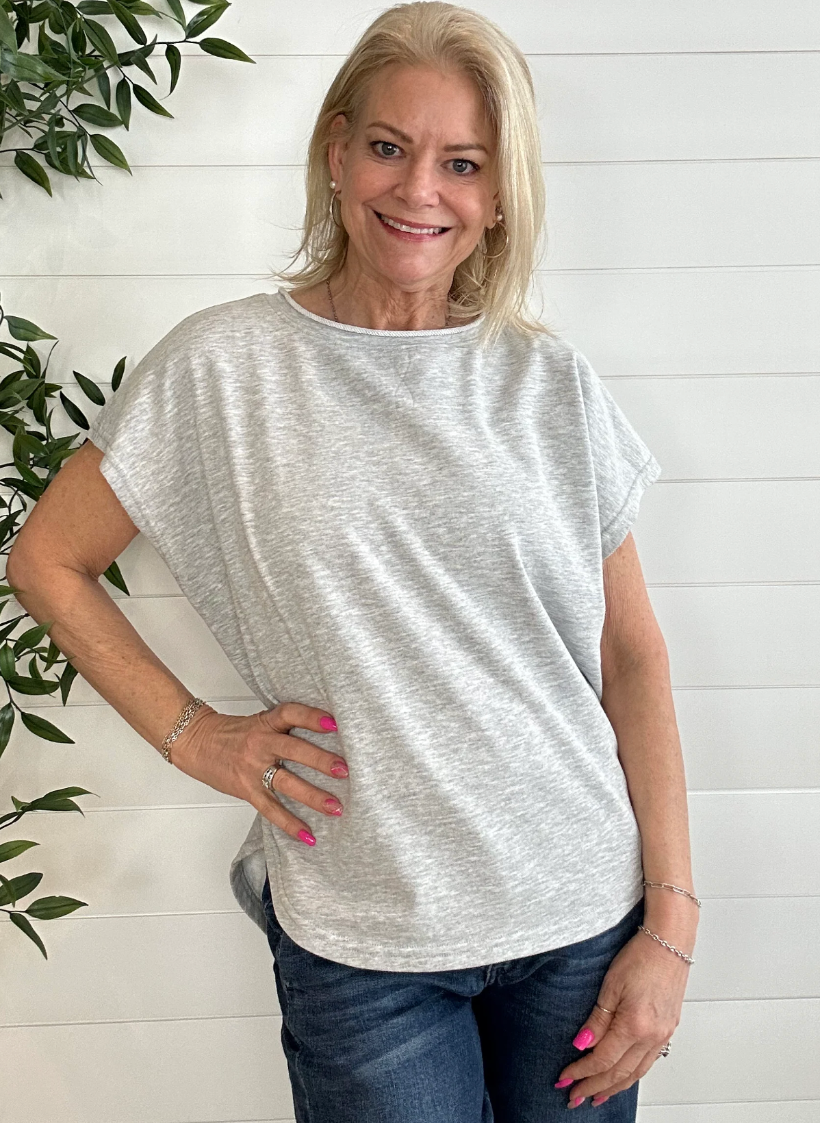 Pair with denim, joggers, or a skort and sneakers for an easy, off-duty look, or layer under a lightweight jacket for a casual-chic finish.