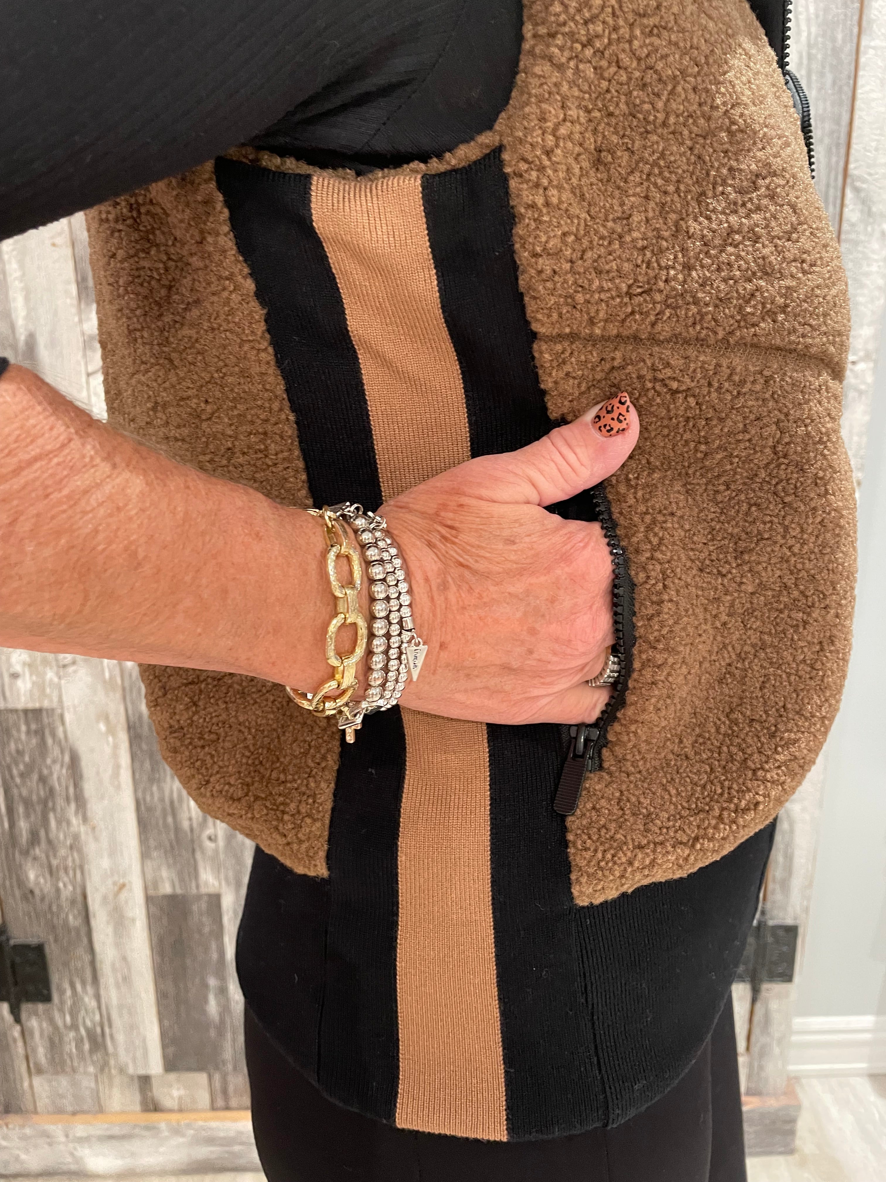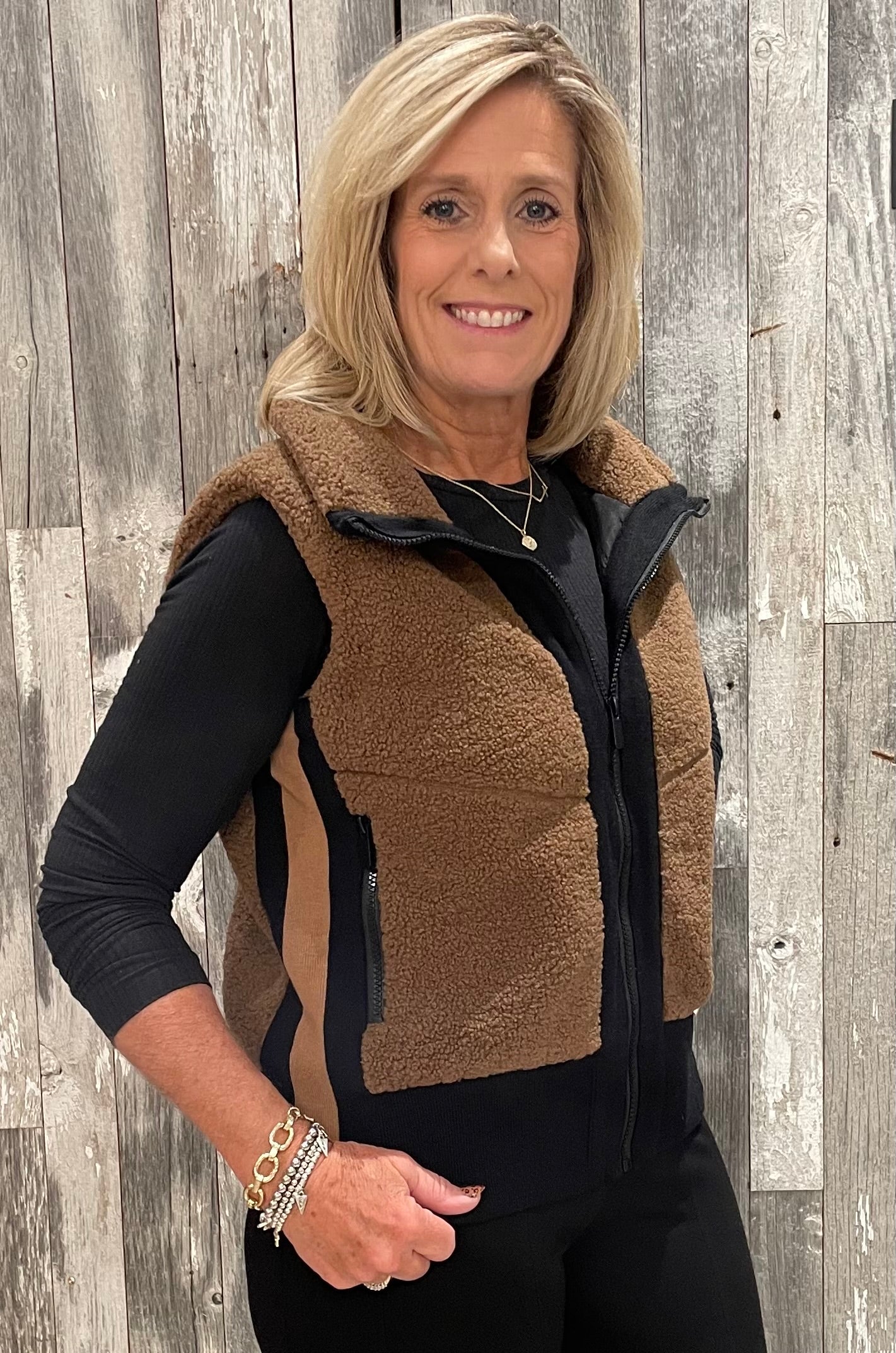 Style: Sleeveless zip-up vest with a sporty yet cozy vibe.